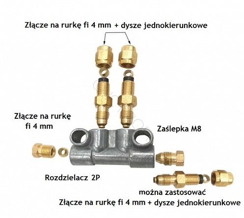 Zasilanie rozdzielacza centralnego smarowania oleju na wężyk fi 4 mm można zamontować na fi 6 mm.
